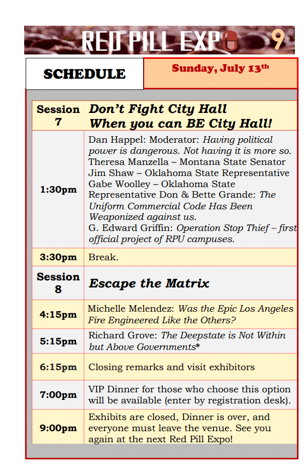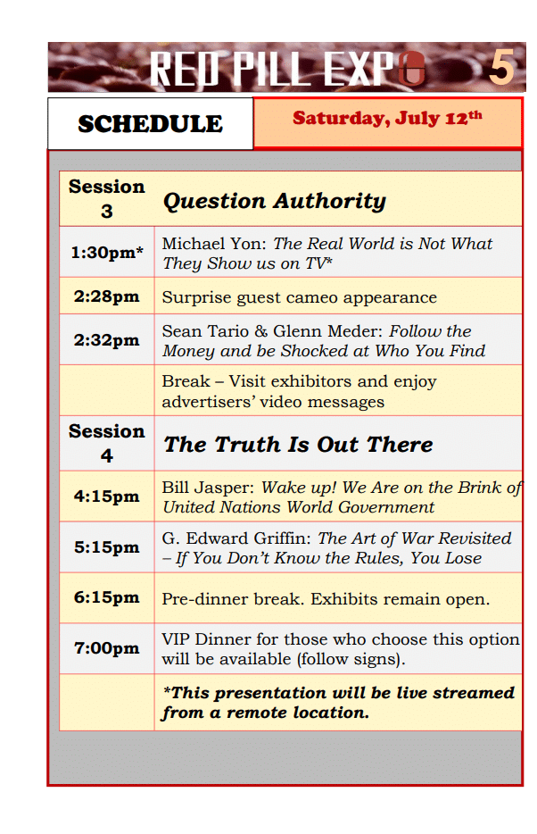 - G. Edward Griffin will explain the current status of Red Pill University Campuses. We have talked about this before, but now we are ready to roll.