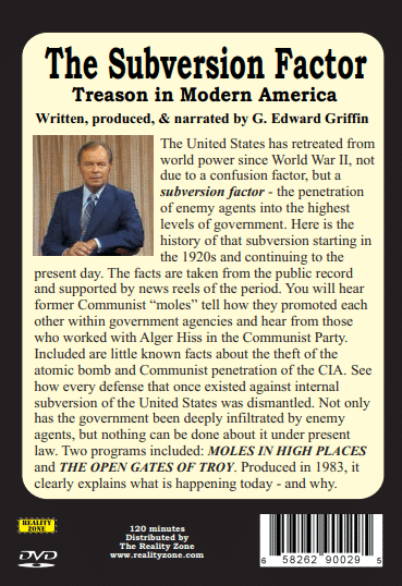 The United States has retreated from world power since World War II, not due to a confusion factor, but a subversion factor - the penetration of enemy agents into the highest levels of government. Here is the history of that subversion starting in the 1920s and continuing to the present day. The facts are taken from the public record and supported by news reels of the period. You will hear former Communist “moles” tell how they promoted each other within government agencies and hear from those who worked with Alger Hiss in the Communist Party. Included are little known facts about the theft of the atomic bomb and Communist penetration of the CIA. See how every defense that once existed against internal subversion of the United States was dismantled. Not only has the government been deeply infiltrated by enemy agents, but nothing can be done about it under present law. Two programs included: MOLES IN HIGH PLACES and THE OPEN GATES OF TROY. Produced in 1983, it clearly explains what is happening today - and why. DVD, 2 hours.
